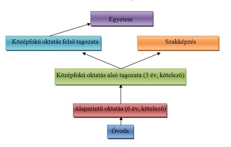 Kínában a kötelező oktatás hétéves korban kezdődik, előtte 3–6 éves kor között óvodába járhatnak a gyermekek. Az előírt kötelező oktatás 9 évig tart, tehát a gyermekeknek 16 éves korukig kell iskolába járniuk. Az alap- és középfokú oktatási rendszer 6 + 3 + 3 szerkezetű (1. ábra). Az egyetemek alapképzése négyéves (kivéve például az orvosi képzést, amely ötéves), a mesterképzés 2–3 évig tart, a doktori iskola pedig minimum hároméves (1). A kötelező oktatási időszakban senki nem fizet tandíjat, csak a taneszközért kell évi néhány száz jüant kiadni. Később azonban – főleg a vidékiek számára – a tandíj és az iskoláztatás egyéb költségei olyan nagy terhet rónak a családra, hogy a szegényebbek eleve elesnek a magasabb szintű oktatásban való részvétel lehetőségétől.