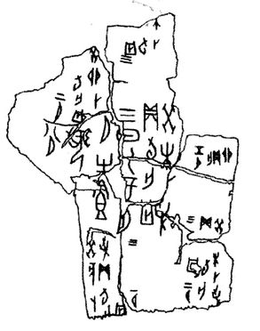 A kínai írás történetét mintegy 3000 évvel ezelőttre vezethetjük vissza egészen a csontokon, kagylókon megőrződött jövendölő jellegű írások megjelenéséig (2–3. ábra).