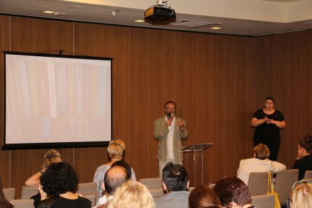 A délutáni programot Ulrike Zeshan Jelnyelvi többnyelvűség és a jelnyelv veszélyeztetettsége című plenáris előadása nyitotta meg, amelyben eltérő jelnyelvet használó siketek diskurzuselemzésének eredményeit ismertette, valamint többnyelvű környezetben vizsgált speciális jelnyelvi jelenségeket mutatott be. A programot Bartha Csilla, valamint siket munkatársai, Romanek Péter Zalán és Nagyné Kiss Anna folytatták a JelEsély projekt bemutatásával. Az előadók ismertették e program legfontosabb célkitűzéseit, valamint szemelvényeket mutattak a magyarországi siket közösség múltjáról és jelenlegi helyzetéről; ezzel kettős eredményt értek el: egyrészt érzékenyítették a hallgatóságot, másrészt feltárták a siket közösség számára legmeghatározóbb kérdést, az oktatásra vonatkozó alapelvek, módszertani megfontolások újraértelmezését.